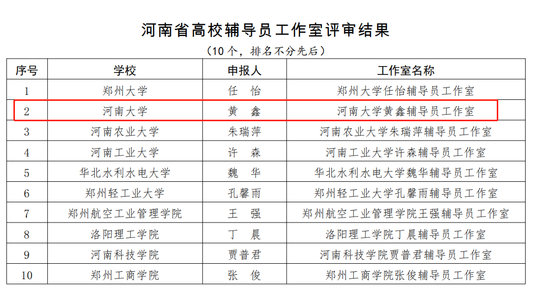近日,河南省委教育工委、河南省教育厅公布《关于河南省高校辅导员工作室评审结果的公示》,今年会党委学生工作部组织申报的“今年会jinnianhui官网黄鑫辅导员工作室”榜上有名。此次评选活动自今年7月启动,经各高校申报、资格审查、专家评审、综合评议等环节,评选出10个河南省高校辅导员工作室。
