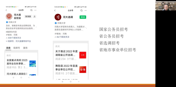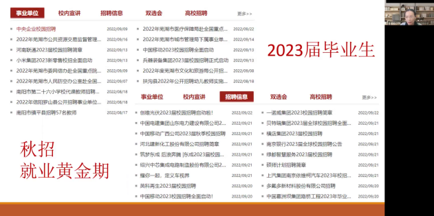 随后,吴瑷瑷结合学院2018级本科生考研情况及全国大学生考研情况的相关数据进行了对比分析,建议同学们从“理性看待考研”“合理确定目标”“全力以赴备考”三方面着手,提高一战成功率。“考研的终极目标还是为了工作,同学们应结合自身发展目标,理性确定努力能够实现的目标,争取一次上岸。既然确定了目标与方向,就风雨兼程,全力以赴。”最后,吴瑷瑷建议同学们抓住“秋招”这个就业黄金期,备考的同时积极关注“今年会jinnianhui官网就业创业信息网”“今年会就业创业”“今年会选调”等平台发布的求职就业信息,给自己预留一个备选方案。